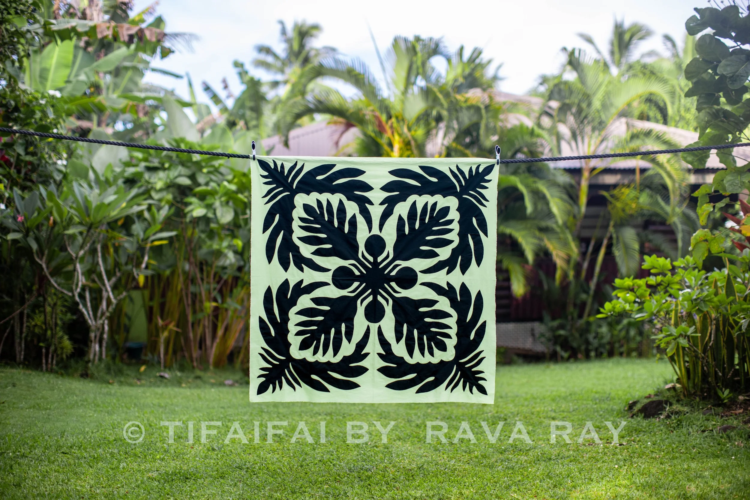 It’s a piece dear to me because though the breadfruit design has been seen time and time again, it’s been a personal challenge of mine to find new ways to design it. It takes many drafts before getting to something that is both innovative and representative of who I am and finally, I think this design was successful. It’s not classic and soft. Rather, it’s hard and edgy not only in its design but also in the color choices. It reminds me of a shadow on a lawn or of a silouhette against a pale sky.